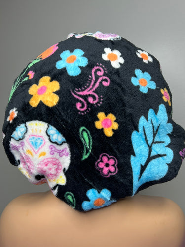 Sugar skull w/ Bubble Gum Pink Satin Reversible Bonnet