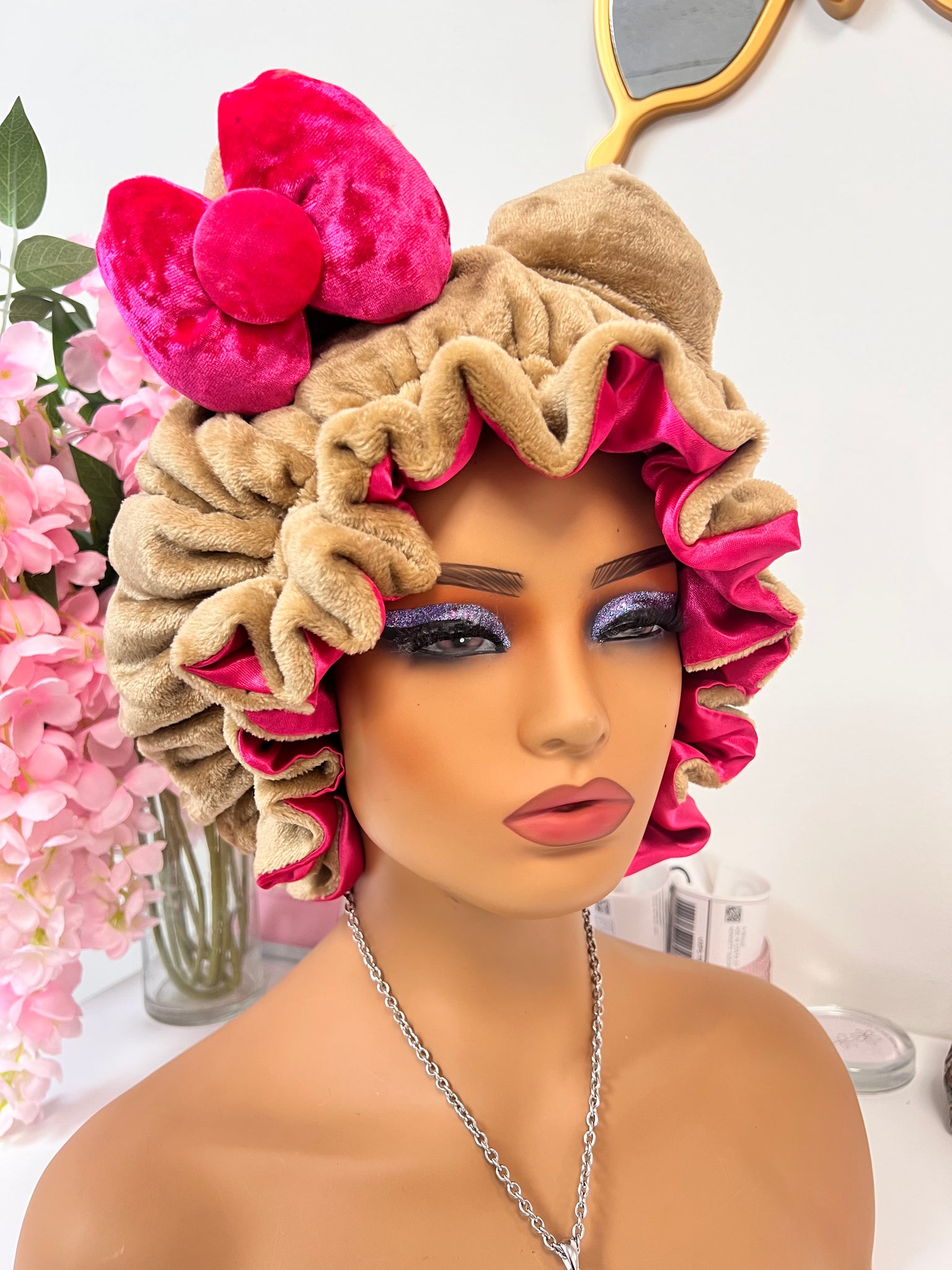 Quick bonnet note 🤍 Our bonnets are soft and flexible by design. Because they’re a circular shape, they take form based on what’s inside—so the more volume filling the bonnet and the more the strap is adjusted, the rounder and fuller it will appear. When worn looser or with less inside, it may naturally sit flatter. This is totally normal and just part of how the bonnet shapes itself ✨