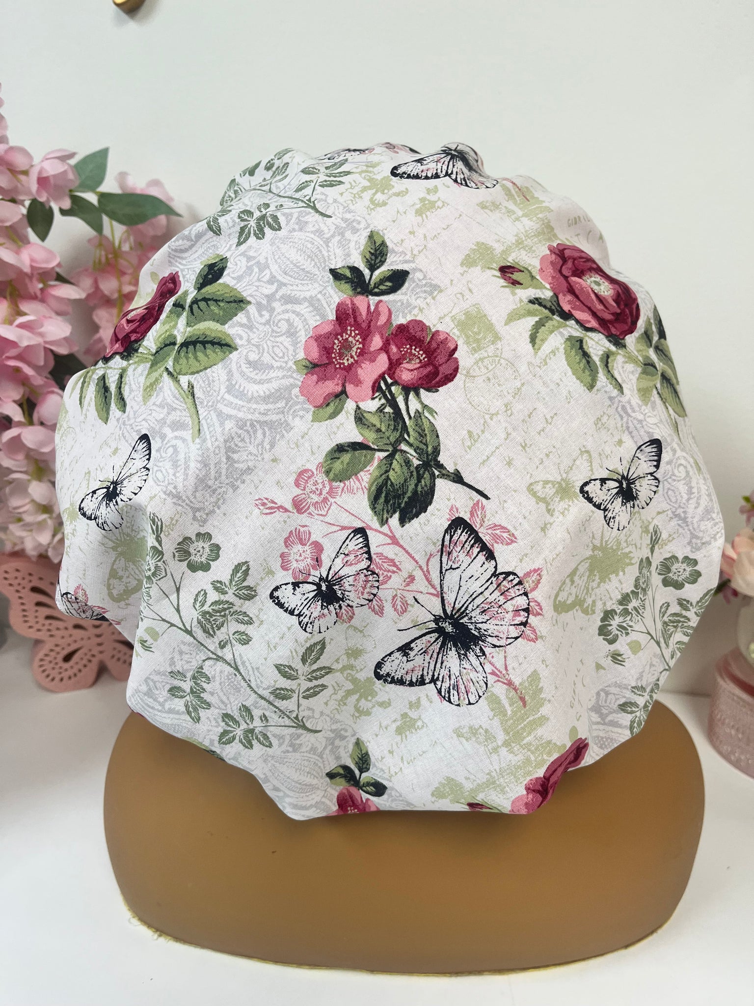 Floral Butterfly Adjustable Cotton Satin Lined Bonnet