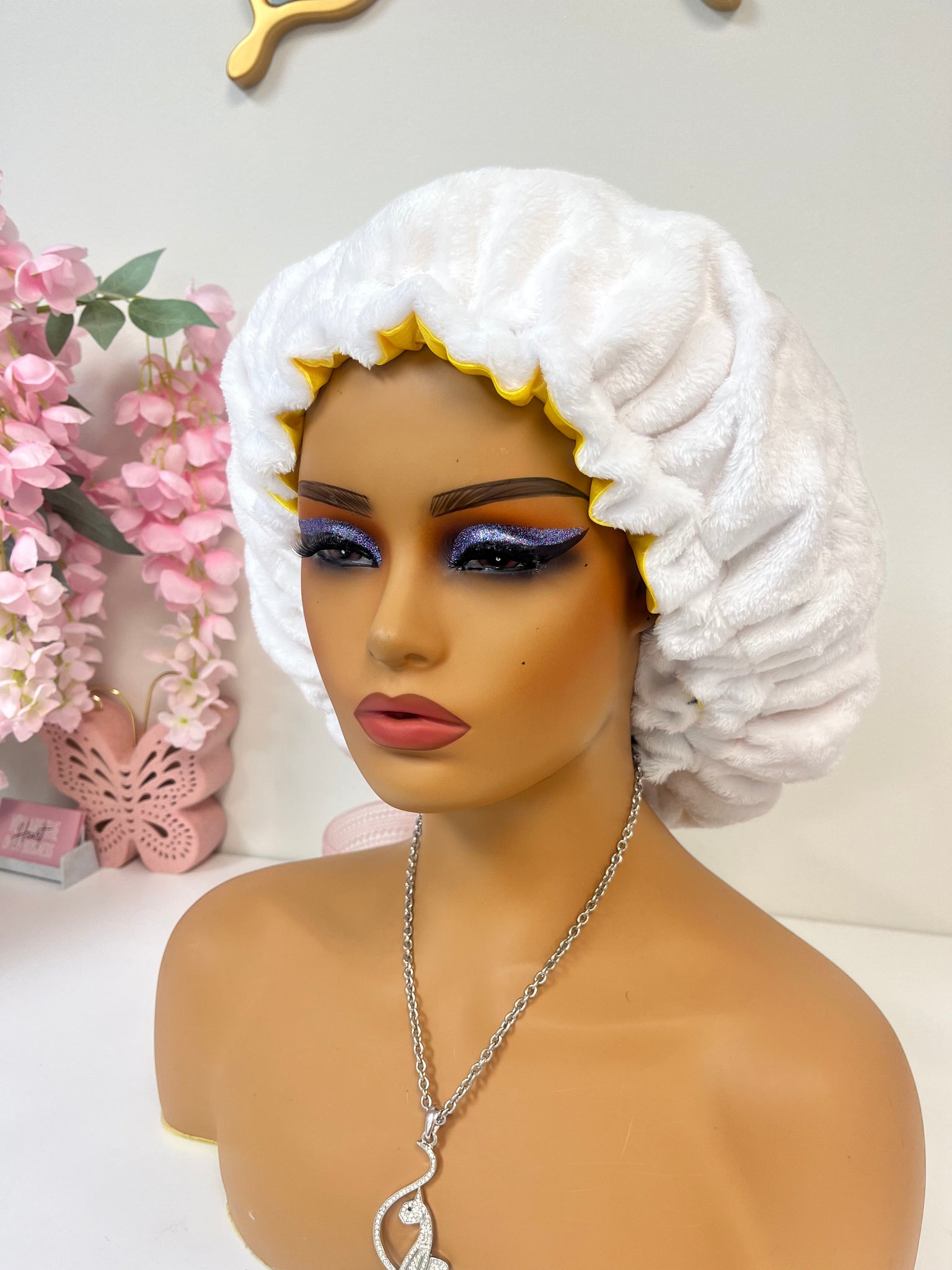 The plush bonnet is not just functional but also fashionable! The beautiful plush bonnets add a touch of fun to your nighttime routine.