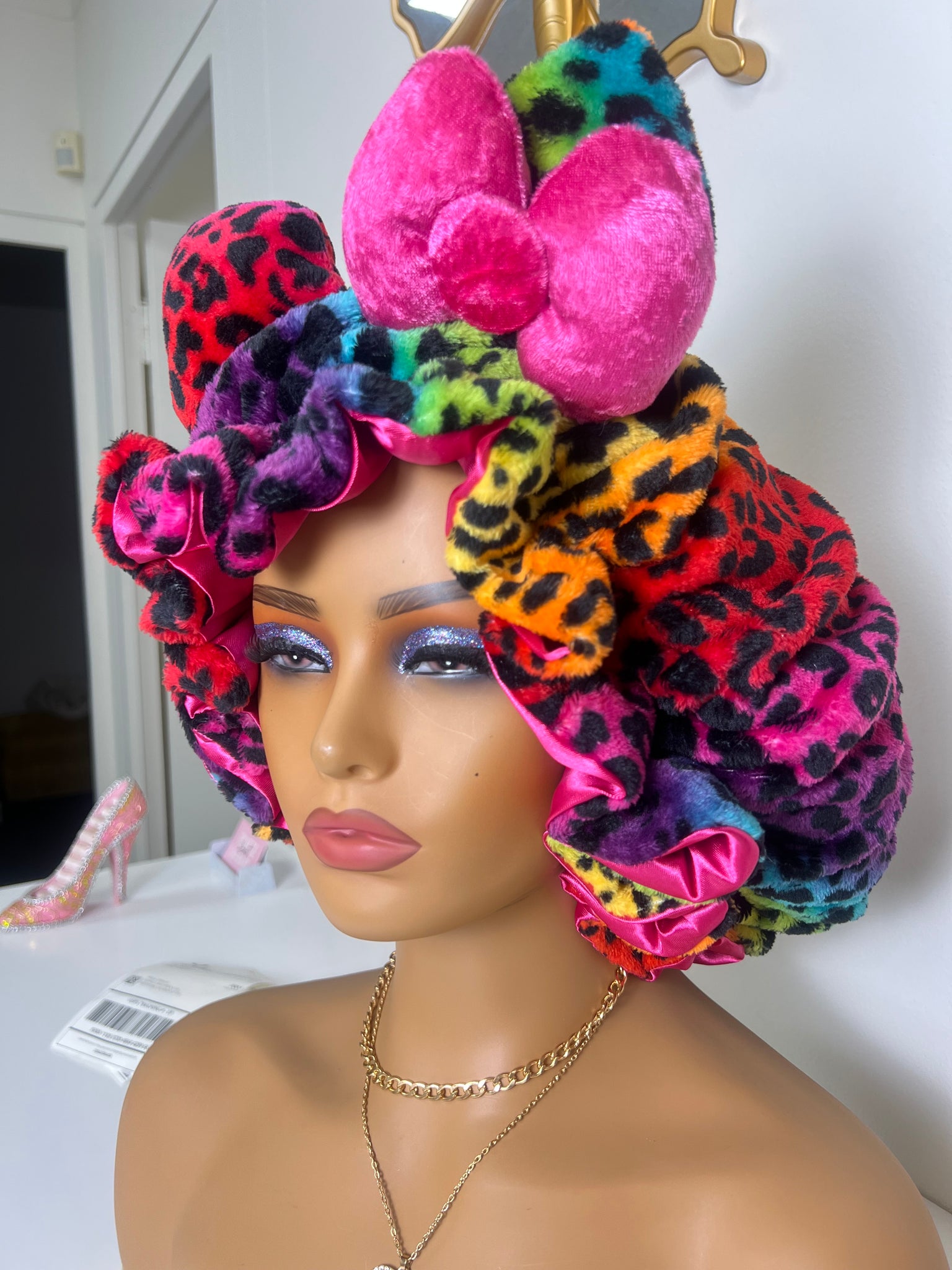 Rainbow Leopard Animal Print 3D Plush Bonnet