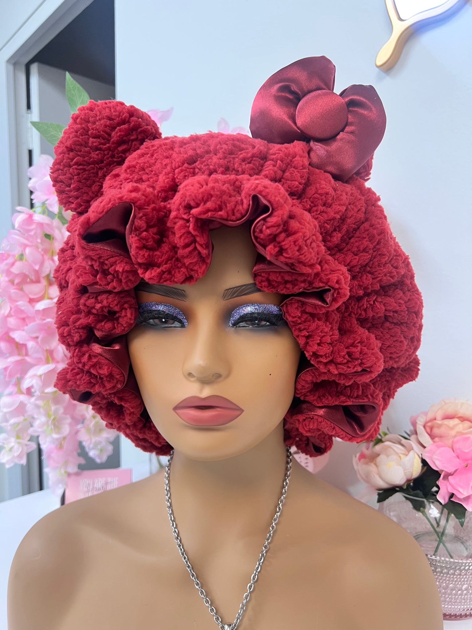 The plush bonnet is not just functional but also fashionable! The beautiful plush bonnets add a touch of fun to your nighttime routine.