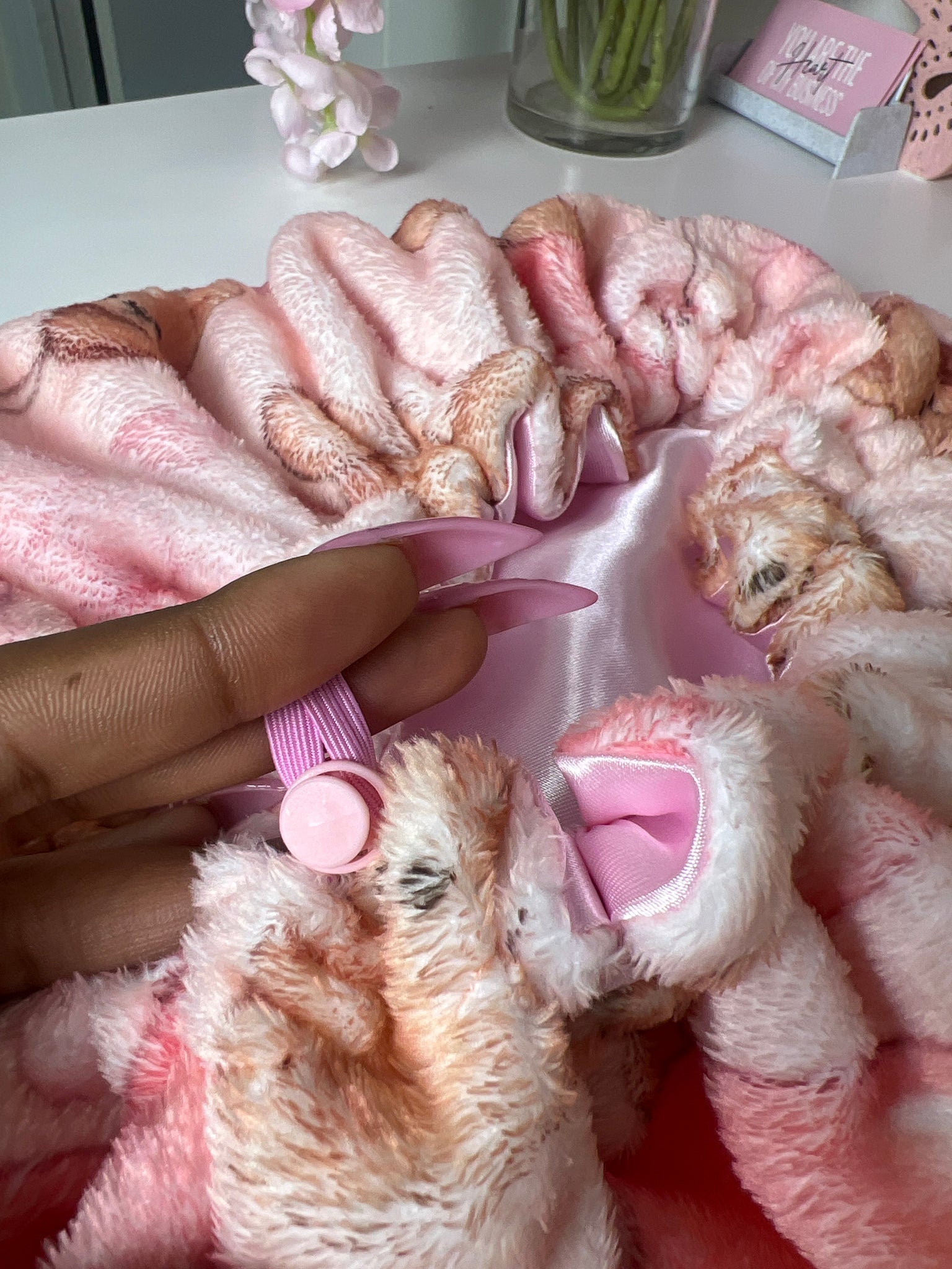 The plush bonnet is not just functional but also fashionable! The beautiful plush bonnets add a touch of fun to your nighttime routine.